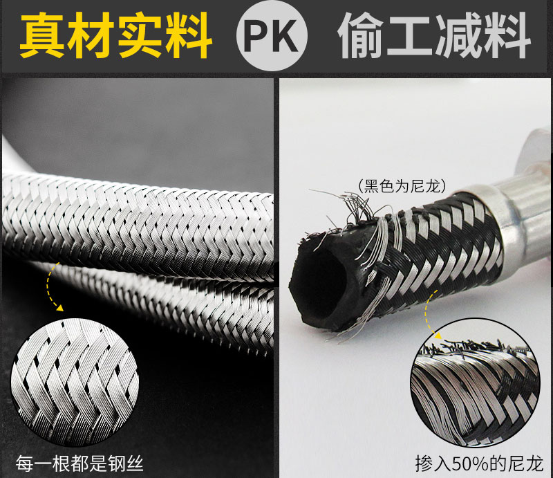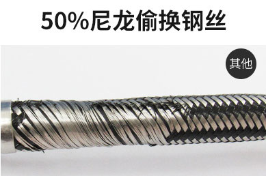 實驗證明:金屬軟管采用201不銹鋼,具有不走絲,燒不著等優(yōu)點,將不銹鋼和尼龍混在一起,品質經(jīng)不起火煉。 |